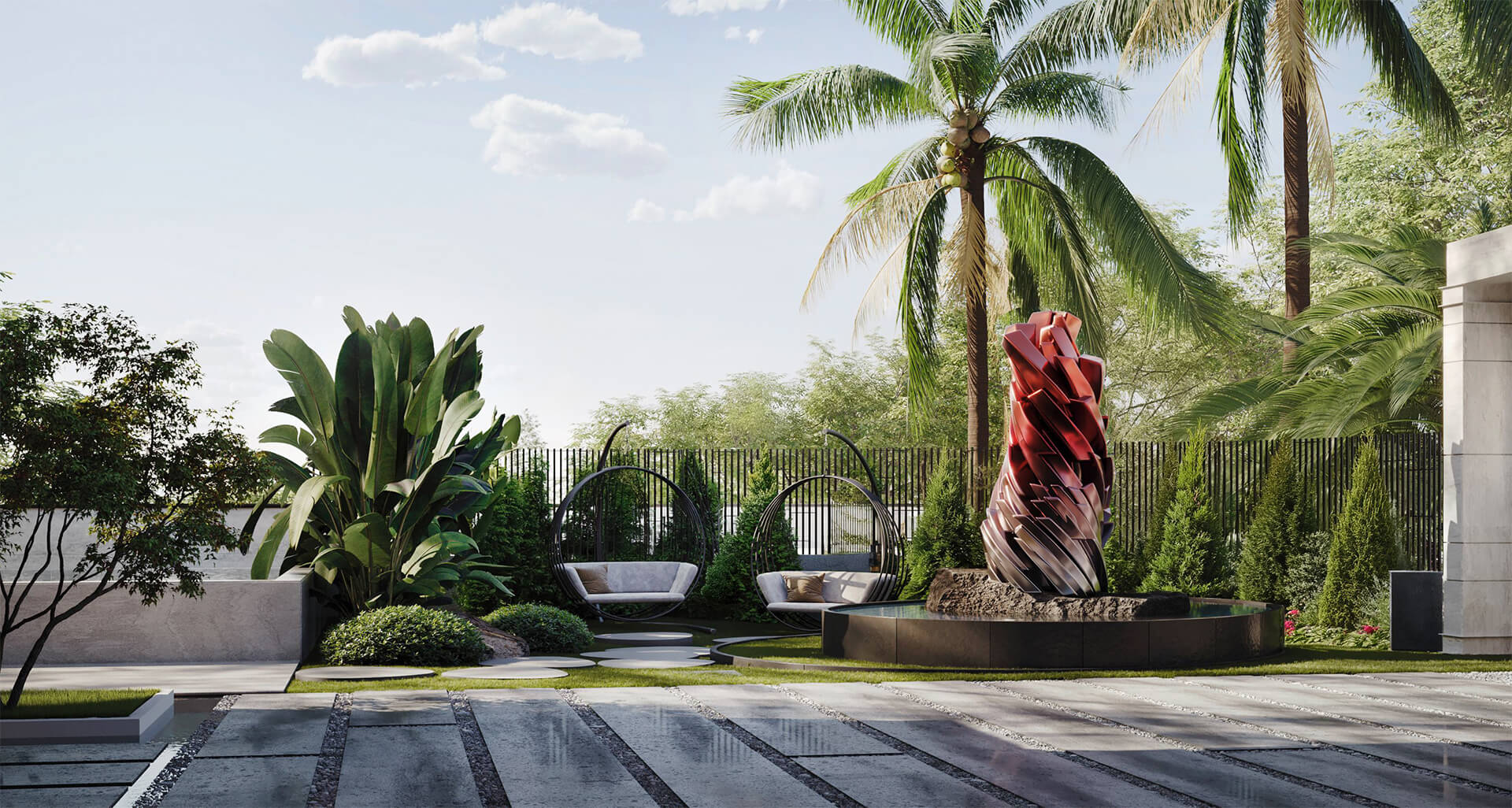 Пешеходные дорожки, освещенные мягким теплым светом, проходят сквозь зеленые зоны, соединяя виллы и общественные пространства. Панорамные смотровые площадки позволяют наслаждаться великолепными видами на море и окружающие пейзажи. Умные системы автополива и освещения работают автоматически, поддерживая идеальное состояние ландшафта и создавая комфортные условия для жителей поселка.